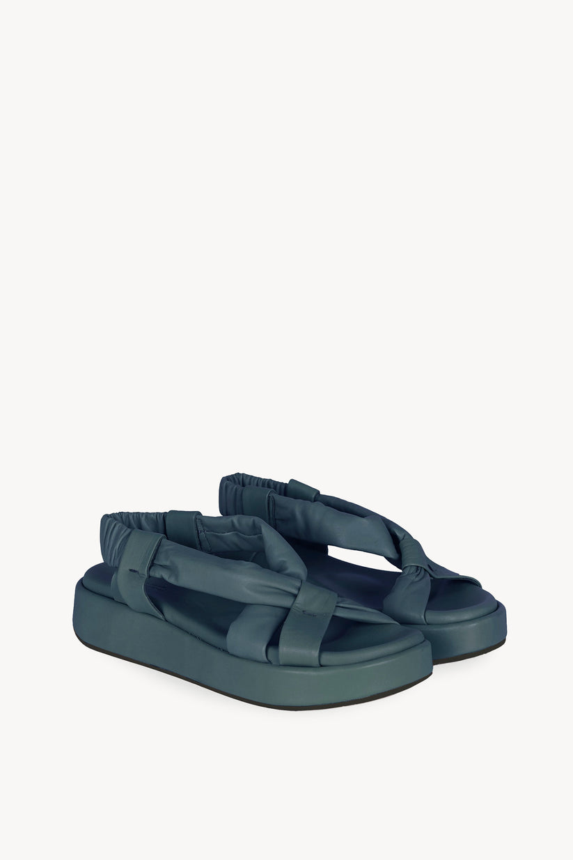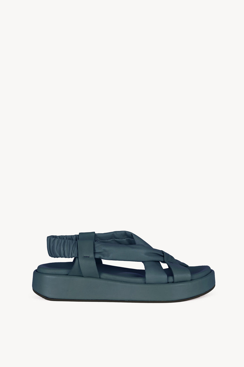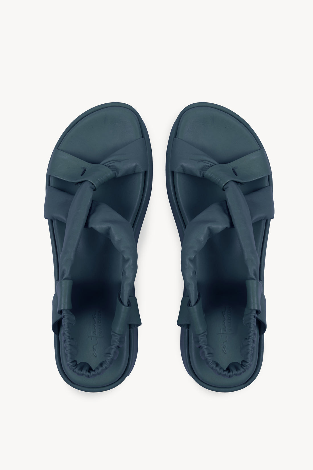 Sandalia de tiras acolchadas tubulares cruzadas, realizadas en piel napa ultra suave.