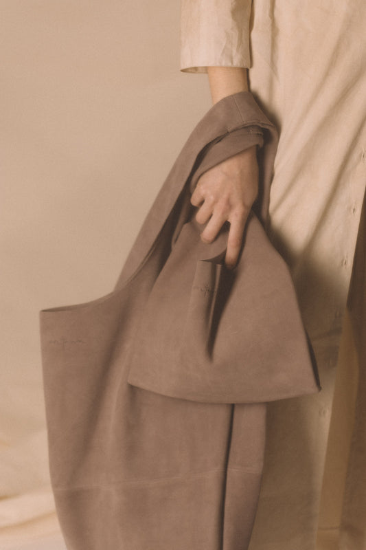 Bolso grande tipo shopper XL, con un diseño espacioso y desestructurado. Realizado artesanalmente en Alicante en suave y ligero ante, este modelo cuenta con amplias asas que se adaptan y que permiten llevarlo cómodamente del hombro. Debido a su fabricación artesanal pueden generarse ligeras variaciones de color que solo añaden a su espíritu único y no afectan la calidad del cuero o del diseño.